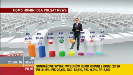 9 października Polsat News pokazał wieczór wyborczy poświęcony wyborom parlamentarnym. Prowadzili go: Dorota Gawryluk, Bogusław Chrabota (studio sejmowe), Agnieszka Gozdyra (studio Polsat News) i Klaudiusz Slezak (studio wirtualne).